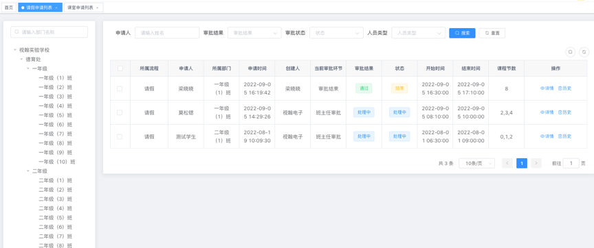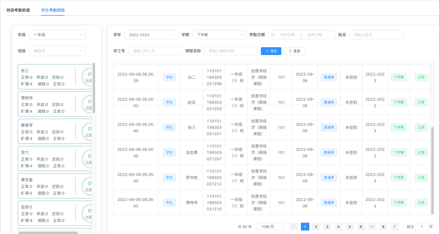 提供按班级、按学生进行考勤明细查询统计